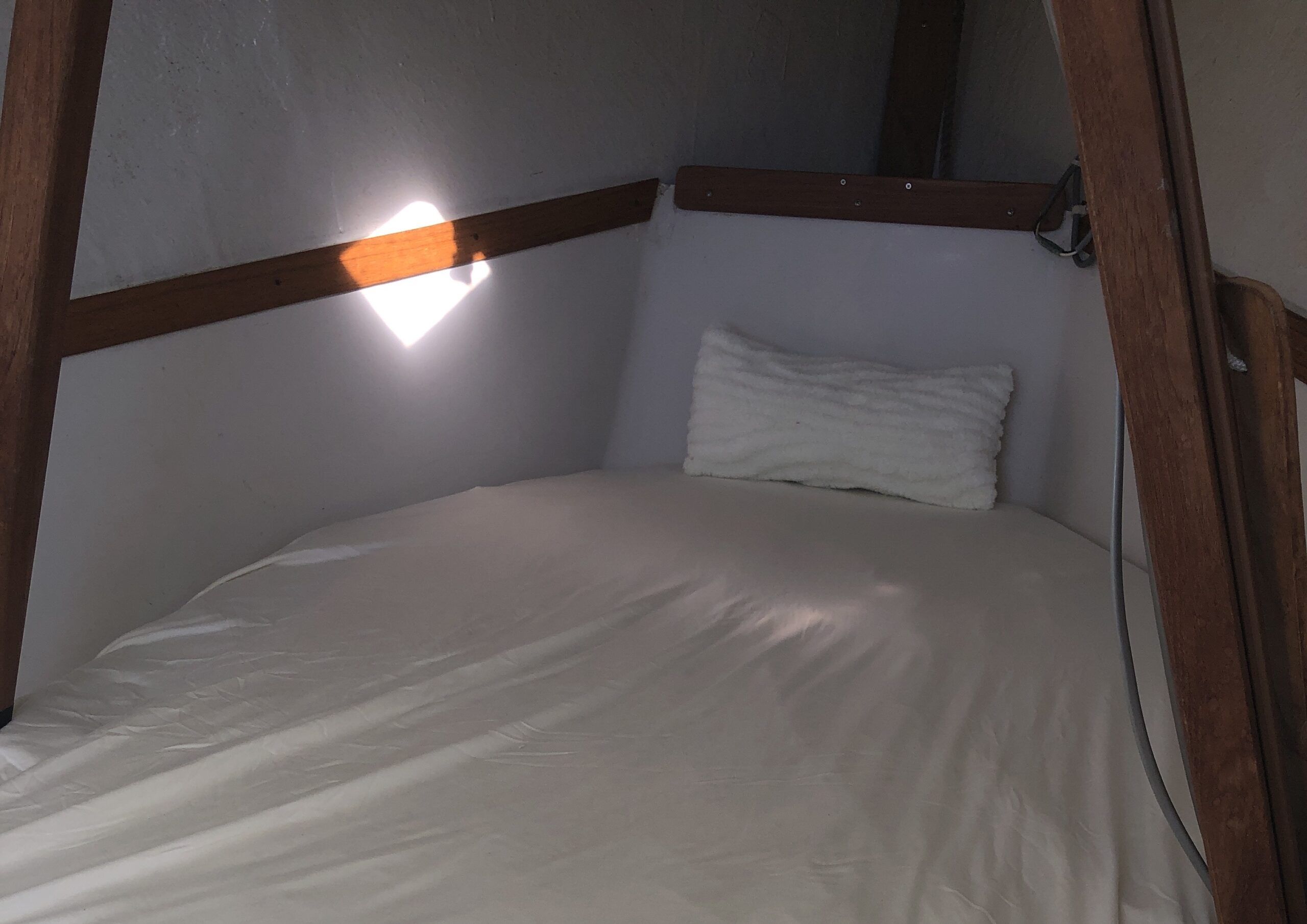キャビンの中に入っていた荷物を整理して、クッションを整えてみると、クッションの数がソファの数に対してなんだか多い。それぞれのソファに当てはめていってみると、ビニール製のクッションで防水加工のクッションっぽい。キャビンから出して、コクピットのベンチにも当てはめて並べていってみると、ソファの数とクッションの数がぴったり当てはまりました。